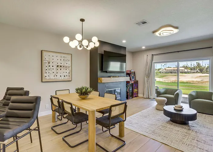 Tijdens een verblijf in Palm Desert Golf Getaway With Views And Resort Perks van 169 m² kunnen gasten zich ontspannen op een patio binnen 3 km van het Vrijheidspark. Er is wifi voor zowel zakenreizigers als vakantiegangers.